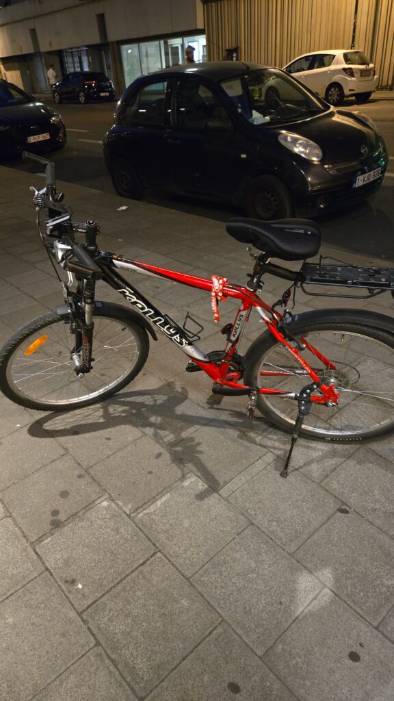 Finally, we returned to Tristan’s hostel where he would gift me with the bicycle that had used to travel from Germany, through The Netherlands, and finally here to Brussels. The Bike with No Name, though distinctly a he according to Tristan, was a hardtail mountain bike that had put in some real work over Tristan’s journey. And now he was mine. Just like that. And so we both said goodbye to Tristan and headed out into the Belgian night, hopeful for a whole new world that had opened up for us.