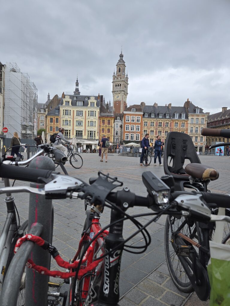 I walked the bike over to Lille’s main square which was buzzing with activity even on a random Wednesday afternoon. I found a bike rack with an open space, left the note on the pannier rack where it could be easily read and walked away.